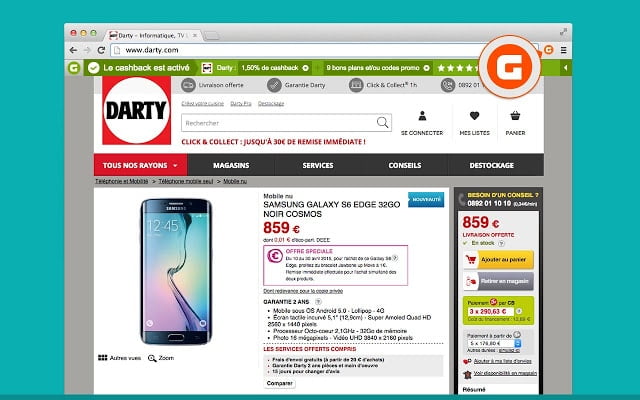 Extension navigateur : l’extension de navigateur est vraiment intéressante car elle permet de trouver en un clic les meilleurs codes promos et cashbacks.